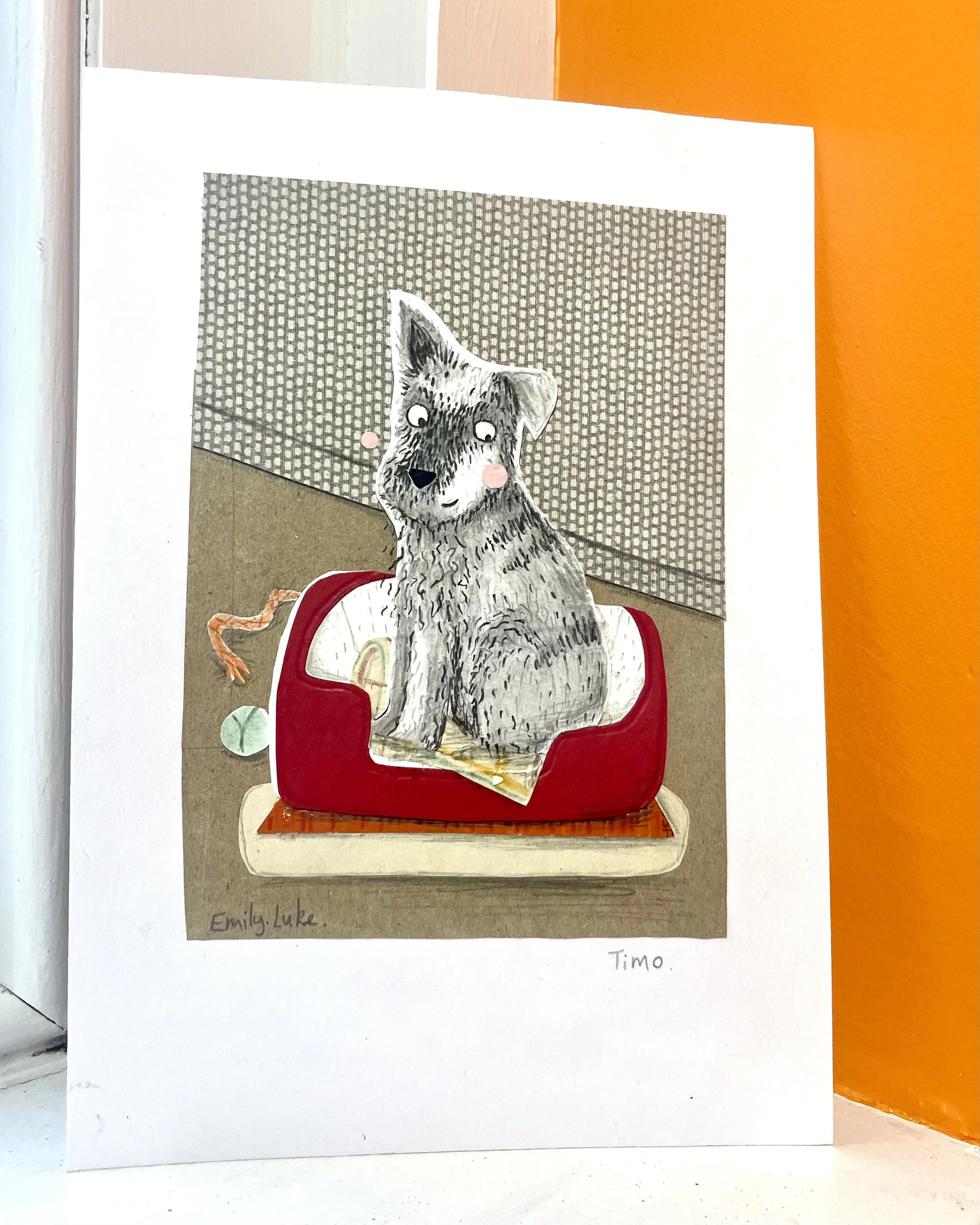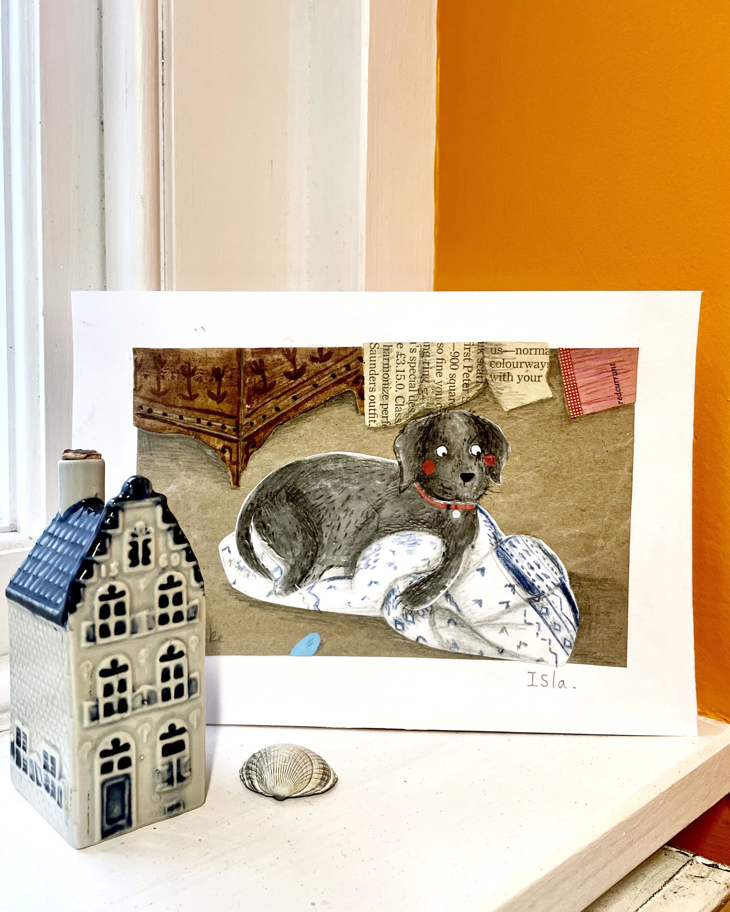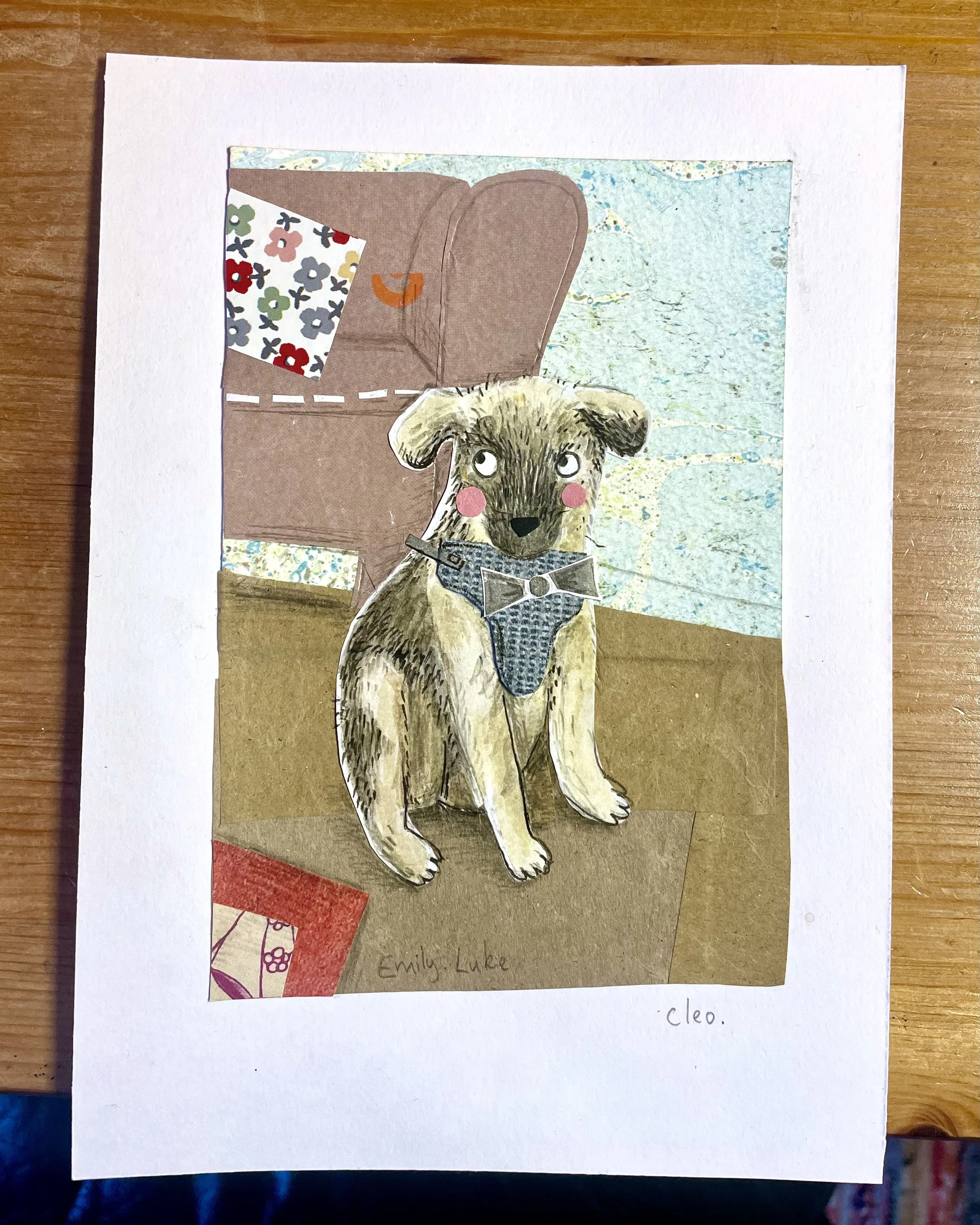 Each pet portrait is hand made by me, in my signature collage style. I will create an original, handmade artwork just for you, on thick white, card and post it straight to your door. All I need from you is a photo (or two) of the pet you would like drawn. I am very happy to draw several pets together, or include their owners in the image, but the cost will be slightly more.